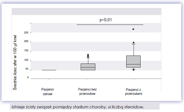 U pacjentek z rakiem piersi, ilość sfer ścisłe koreluje ze stadium choroby. W przypadku zaawansowanego stadium choroby duża cześć krążących komórek nowotworowych mogą stanowić macierzyste komórki nowotworowe. Badając grupę osób zdrowych (grupa kontrolna) nie zaobserwowano wzrostu sferoidow.