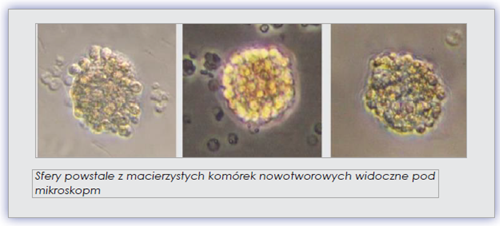 W wyniku hodowli powstają sferyczne struktury o średnicy 30–100 μm, zwane sferami/sferoidami. Składają się one z komórki-matki i mogą zawierać maksymalnie 100 komórek potomnych.